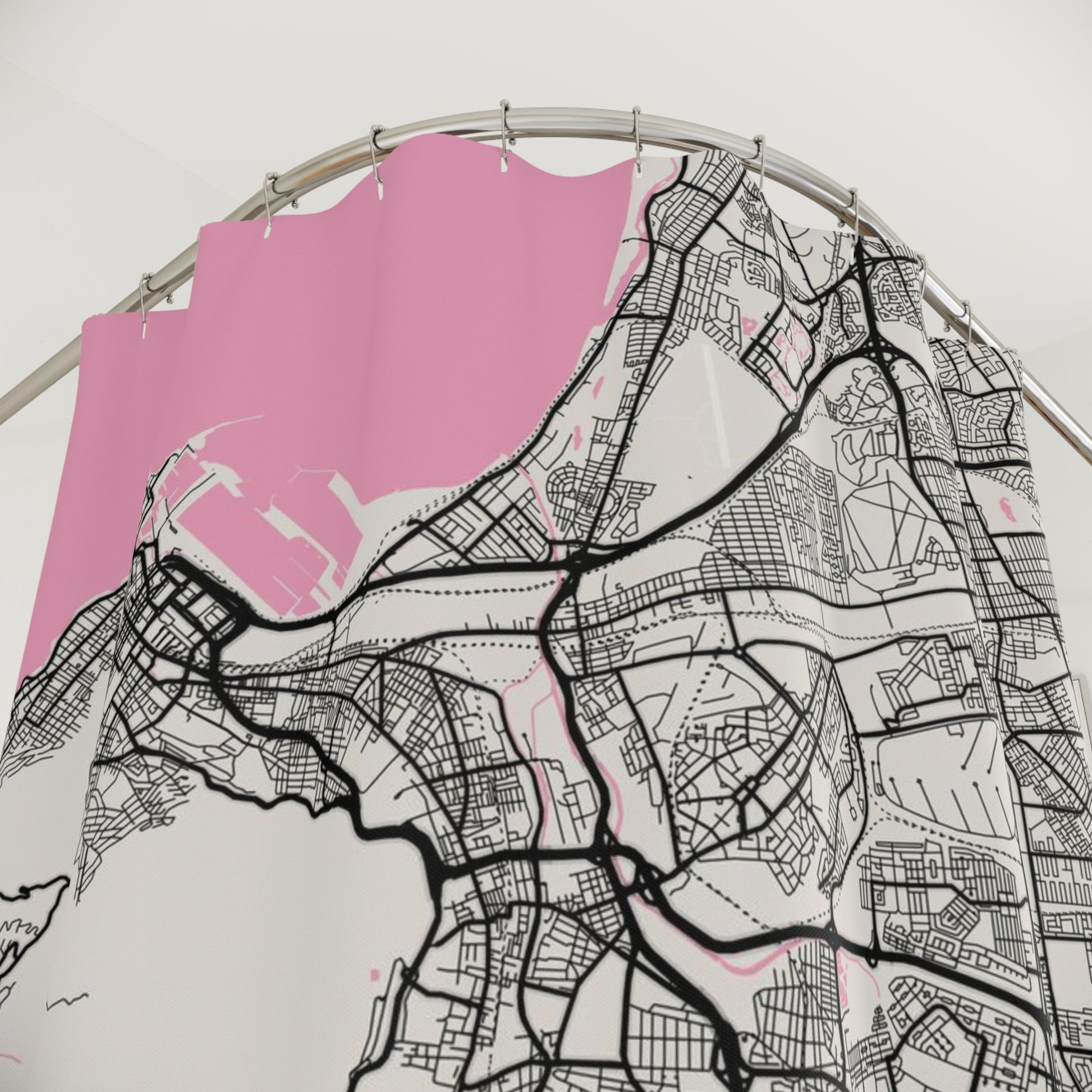 Introducing a minimalist shower curtain designed to infuse a unique and personal style into your bathroom. Crafted from exceptionally durable polyester, this curtain remains in pristine condition for an extended period. This City Map Print is an ideal canvas to display as a friendly reminder of your connection/memories, past or future visit or a celebration of your love for Cape Town, South Africa.