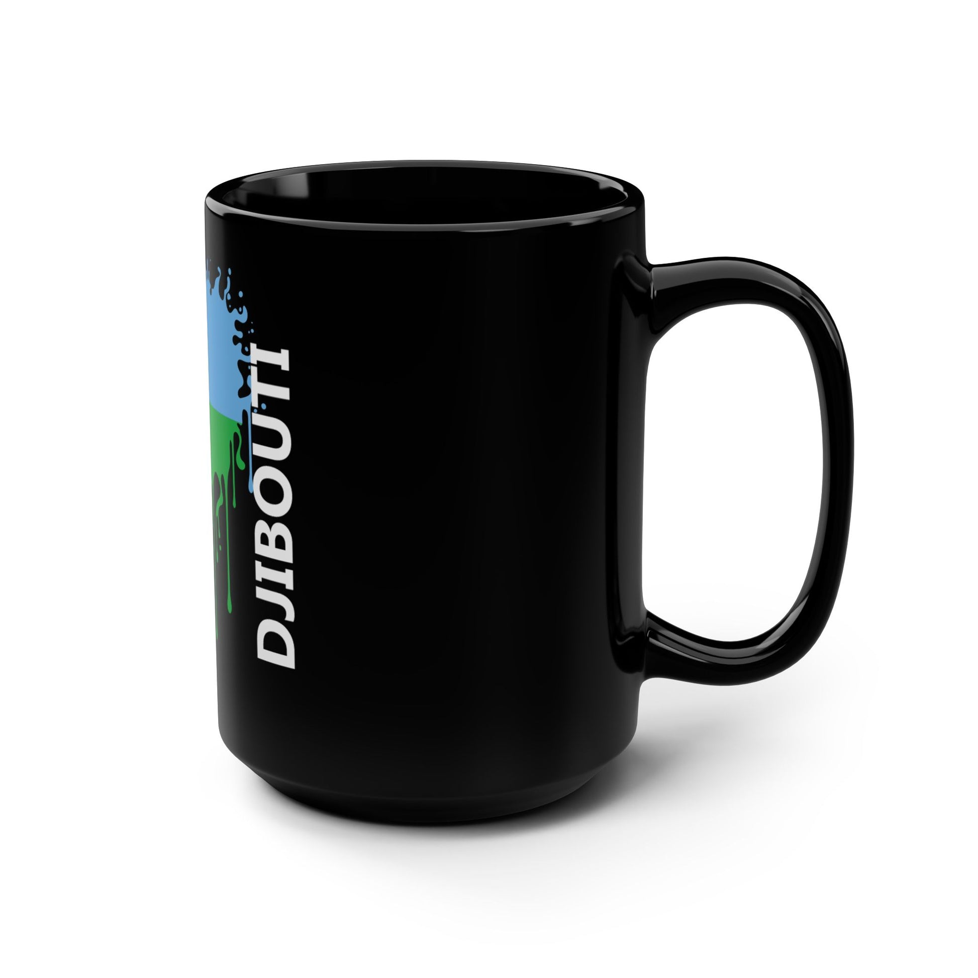 Djibouti Flag Drip Black Coffee Mug, 15 oz
