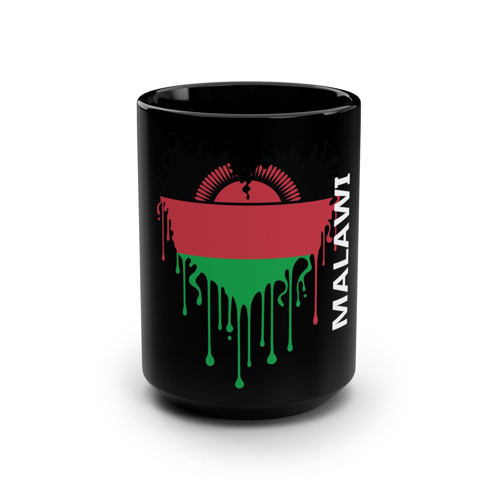 Malawi Flag Drip Black Coffee Mug, 15 oz